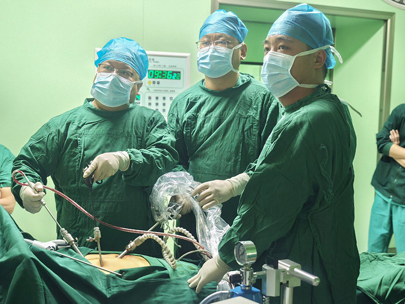 近日,在普外科于刚主任的带领下,一场高难度的复杂腹腔镜手术在我院顺利实施。本次手术团队由普外科于刚主任、郑清主任、仵广生医师,以及麻醉科巩主任、手术室护士长王曦